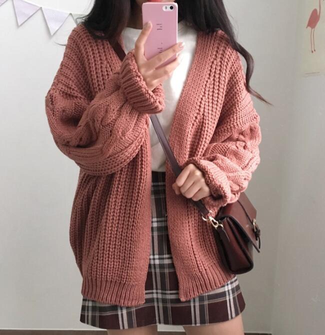 Pastel Pink Heart Hoodie Knitted Cardigan