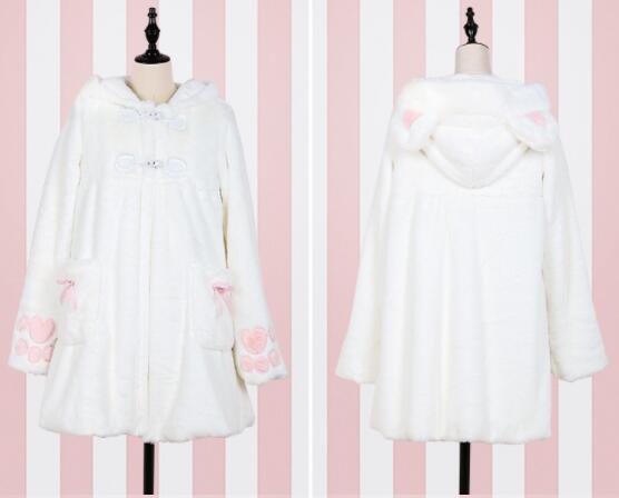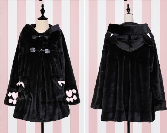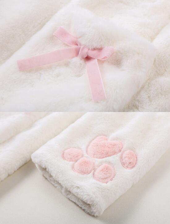 Sweet Cat Paw Embroidery Faux Fur Soft Long Warm Overcoat
