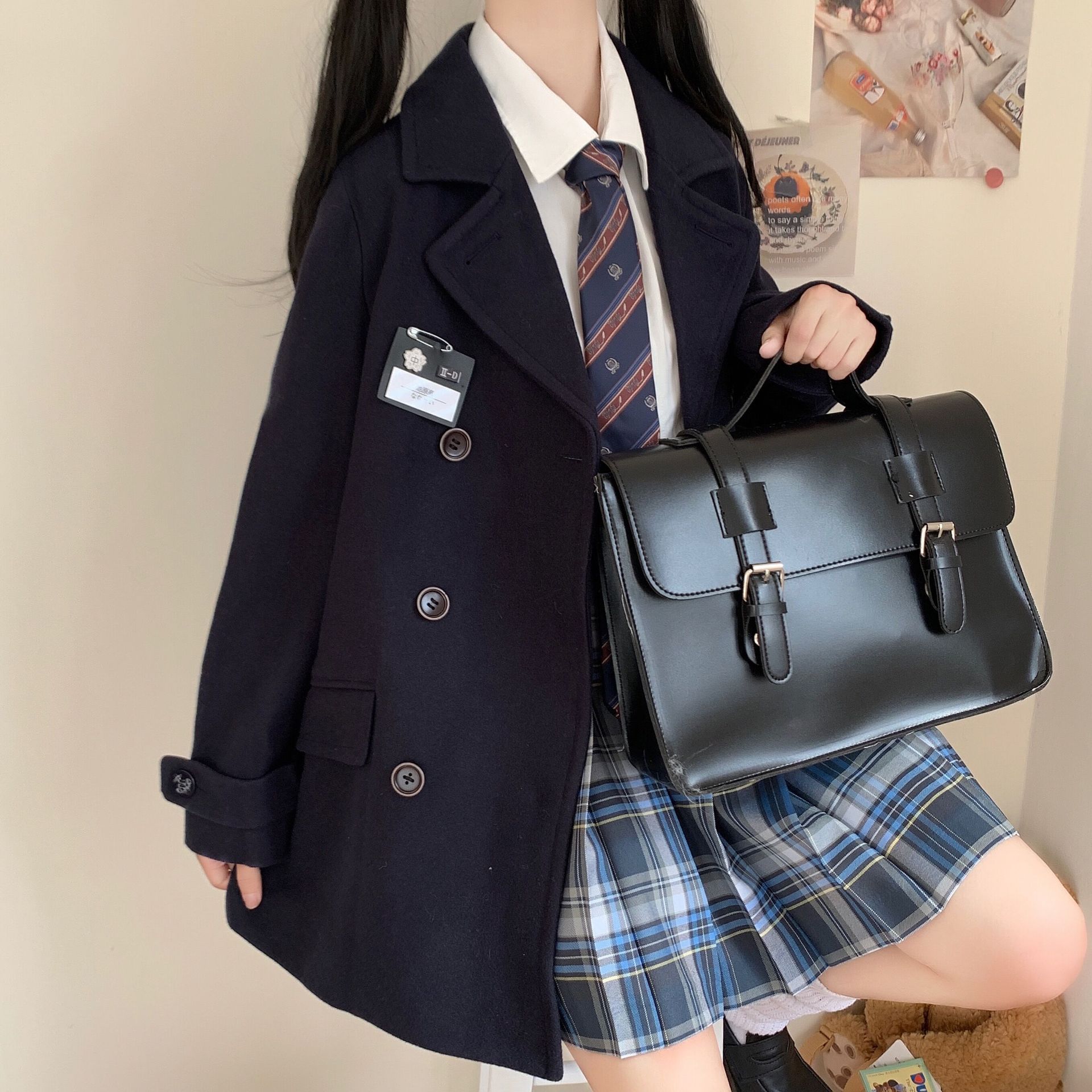 JK Mori Girl Woolen Solid Color Mid-length Coat