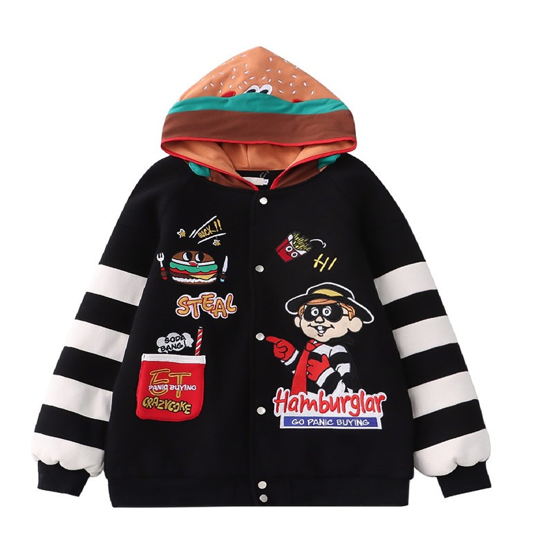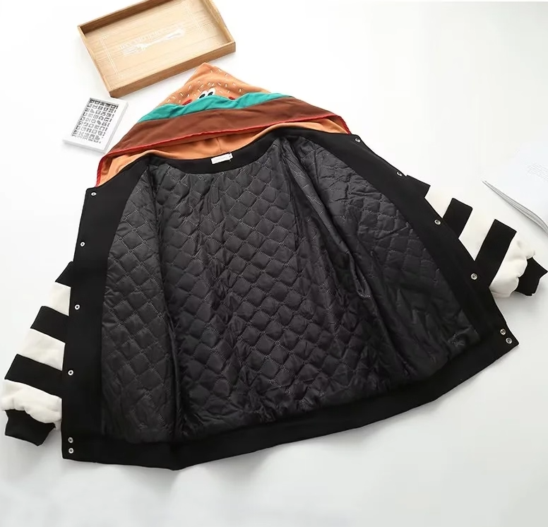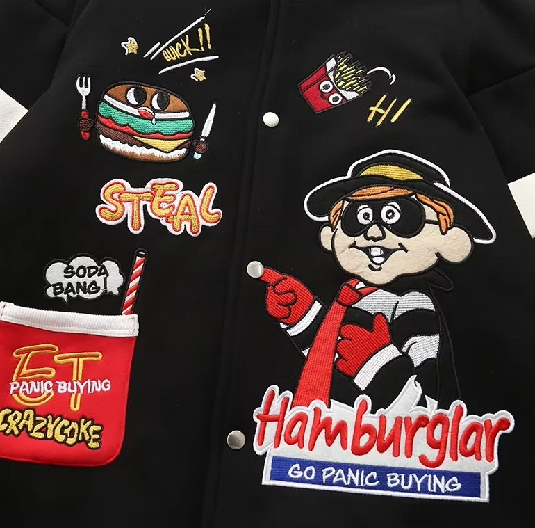 Harajuku Hamburger Embroidered Bomber Jacket
