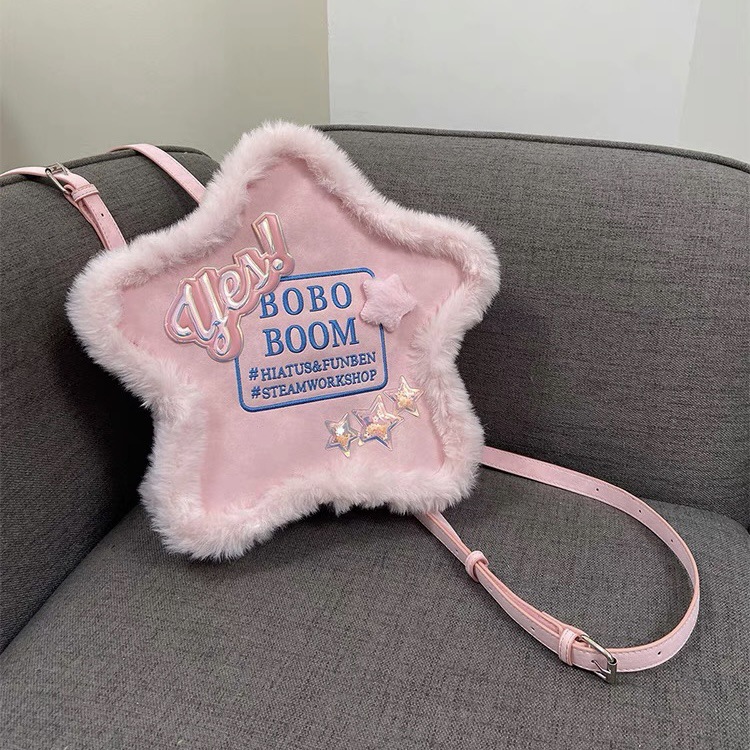 Step into the era of Y2K with our Pink Star Furry Backpack – a perfect blend of nostalgia and trendy fashion. The faux furry texture adds a touch of luxury, while the pink star design brings a playful and eye-catching element. Crafted with attention to detail, this backpack is not only a statement accessory but also a practical choice with ample storage space. Whether you're heading to a Y2K-themed event or simply want to infuse some fun into your everyday style, the Y2K Pink Star Furry Backpack is the ultimate choice for those who love a touch of retro and a dash of glamour.