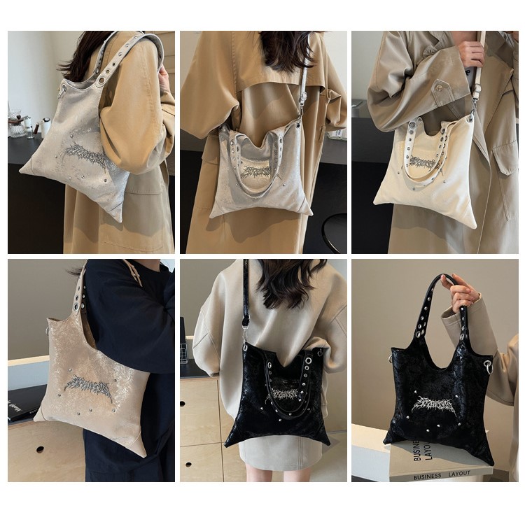 Elevate your style with our Chic Studded Leather Shoulder Bag. Crafted from premium leather, this timeless piece exudes sophistication and edge. The intricate stud detailing adds a touch of rebellious glamour, while the sleek silhouette ensures versatility. Whether you're heading to the office or out for a night on the town, this shoulder bag is the perfect accessory to complete your ensemble. With ample space to carry your essentials, it's both stylish and functional.