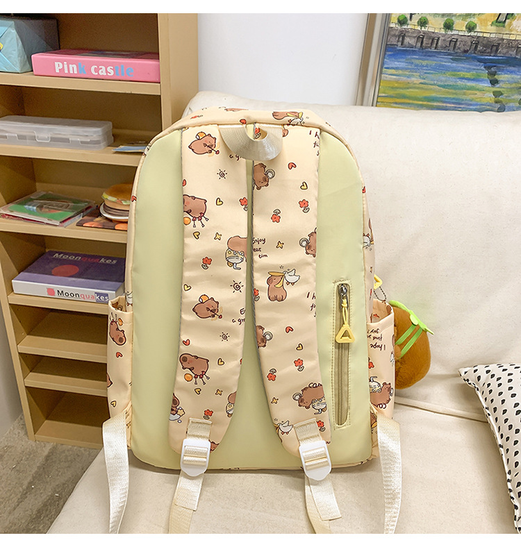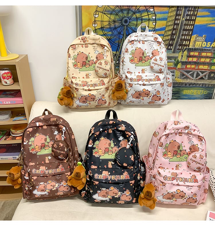 Cute Capybara School Backpack With Plush Pendant and Purse