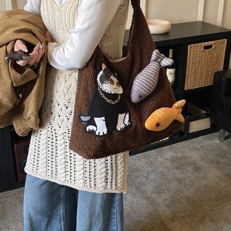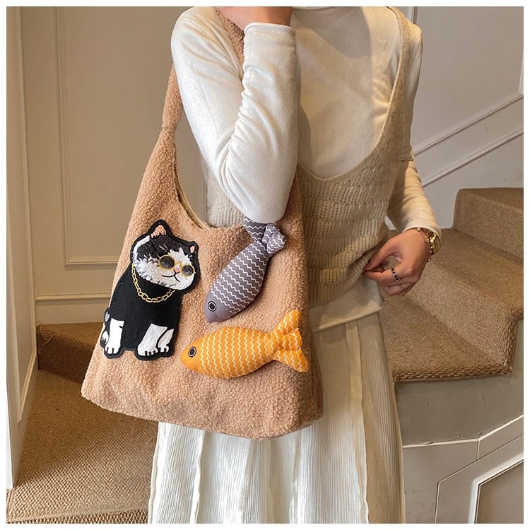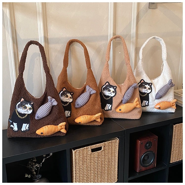 Cute Cat Fish Fleece Bag Shoulder Bag