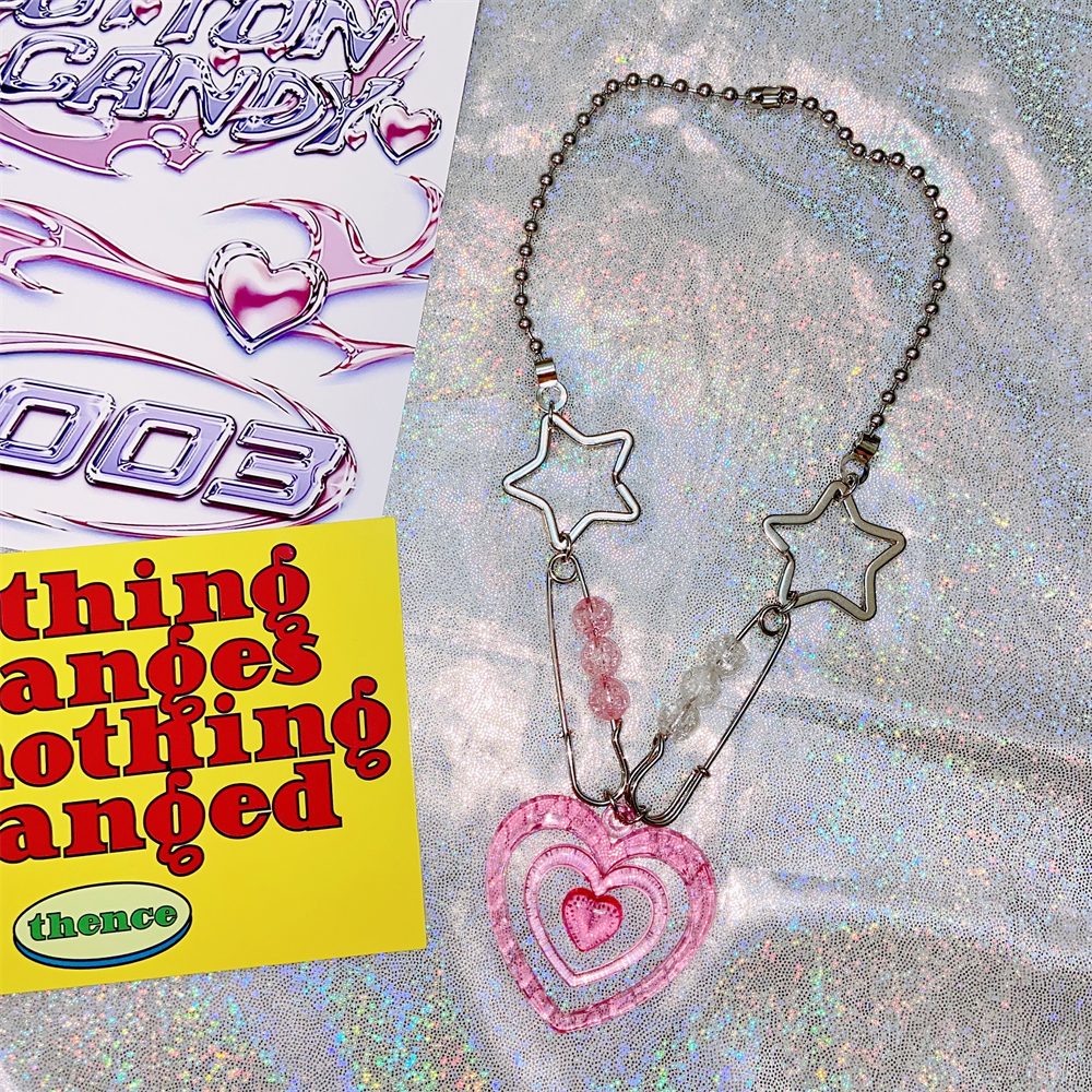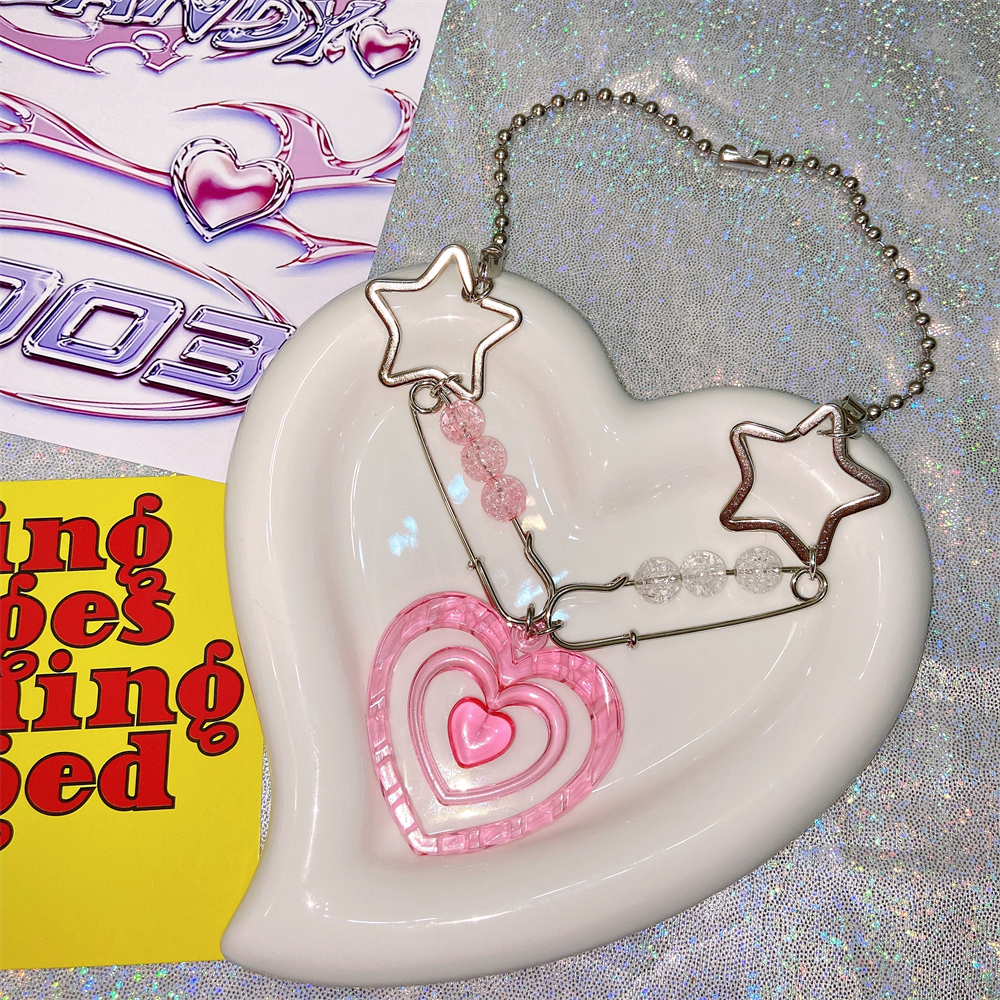 Y2K star pin love heart chain necklace