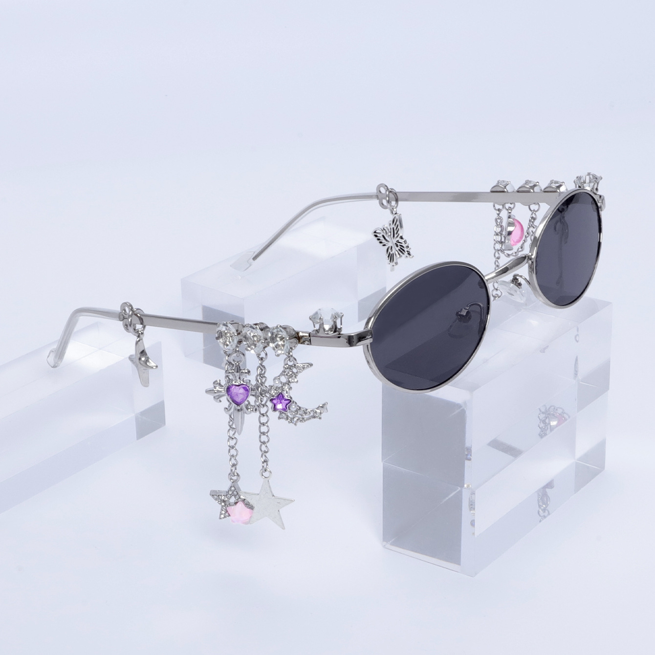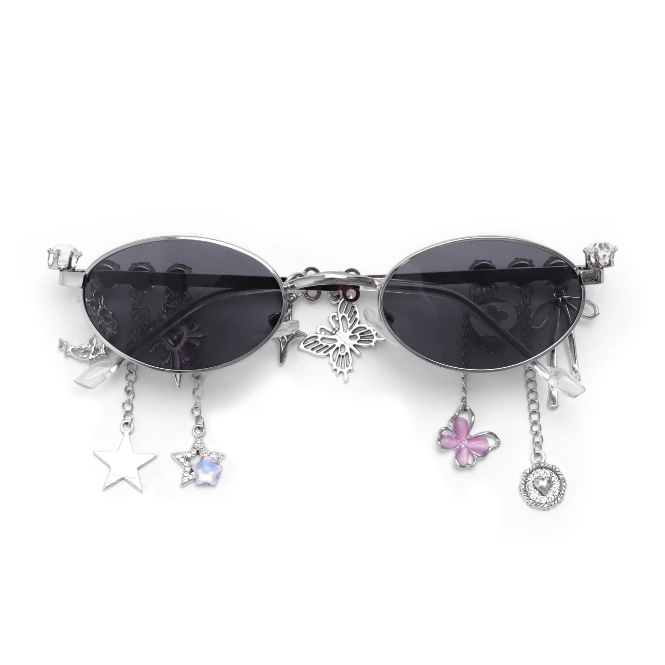 Step into a realm of whimsical style with our Fairycore Oval Sunglasses. These enchanting shades feature delicate butterfly and star pendant charms that dance with every movement. The chic oval frames add a touch of vintage flair, while the charming details evoke a dreamy, ethereal aesthetic. Perfect for adding a sprinkle of magic to any outfit, these sunglasses are a must-have for those who embrace their inner fairy. Let your style take flight!