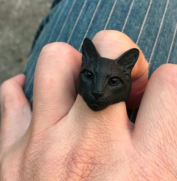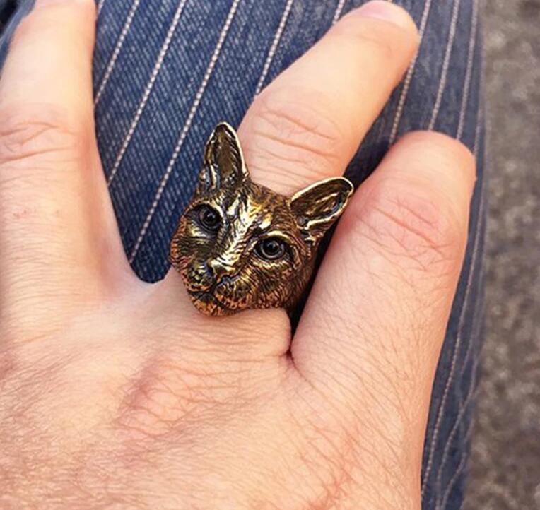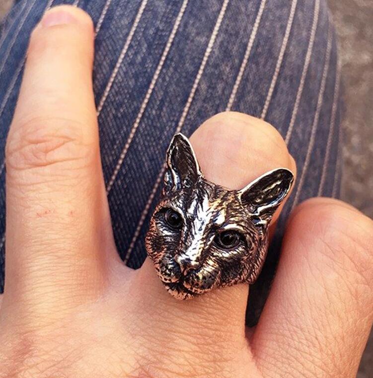 Punk Big Cat Head Ring
