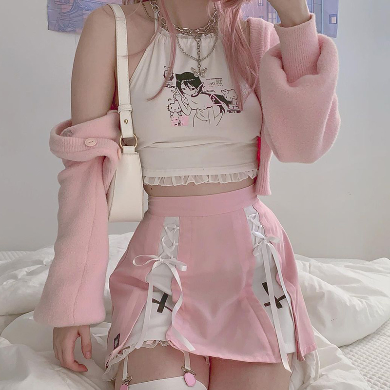 Cute Anime Print Halter Top