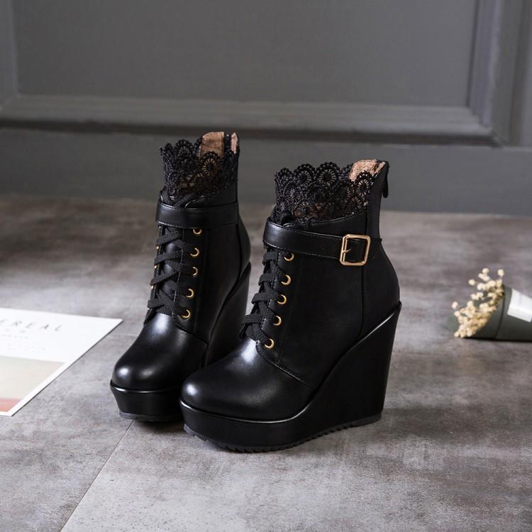 Black White Lacy Wedges Heels