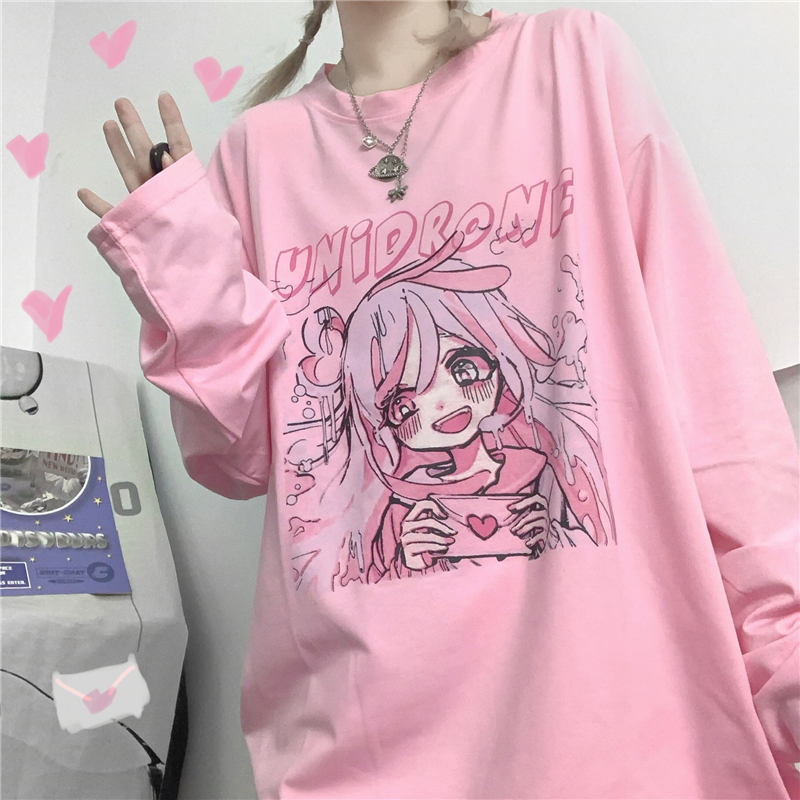 Anime Girl Pink Long Sleeve T-Shirt