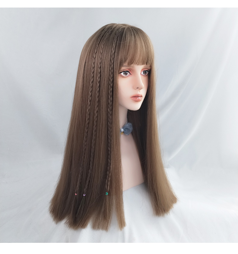 JK air bangs light brown long straight wigs