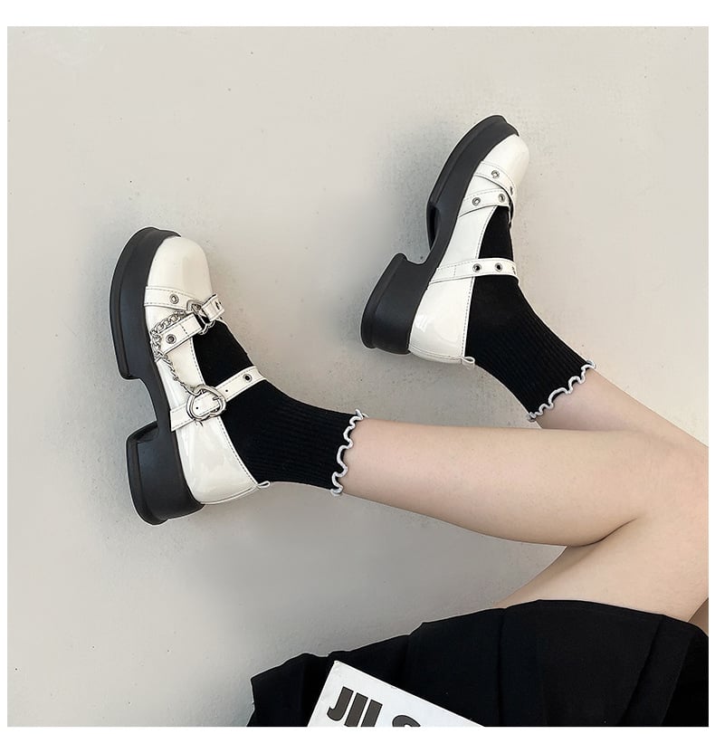 Heart Chain Mary Jane Shoes - 2colors