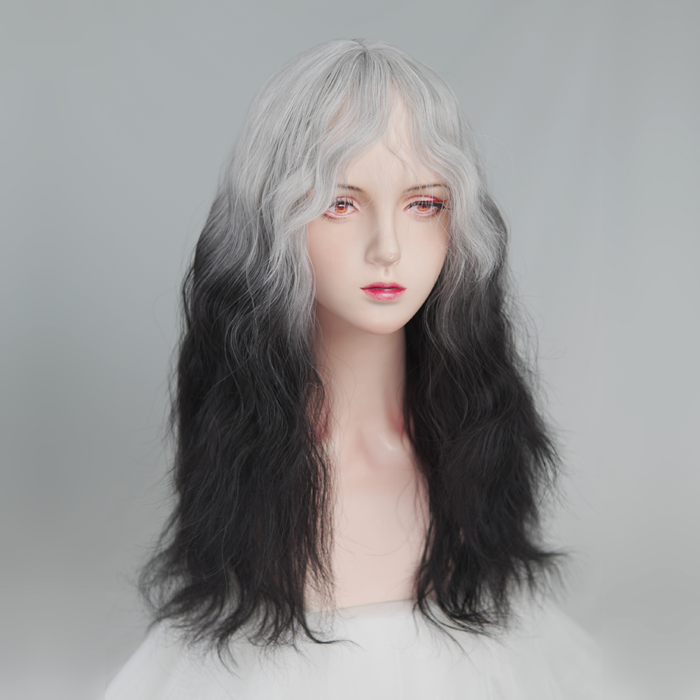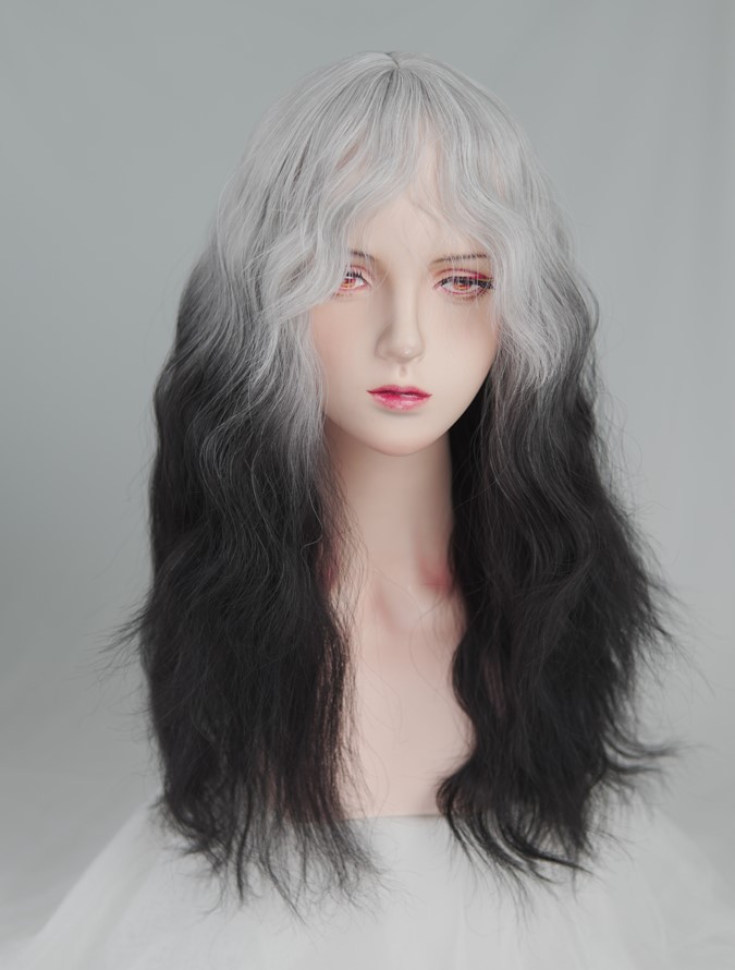 Black and White Gradient Curly Long Y2K Wig