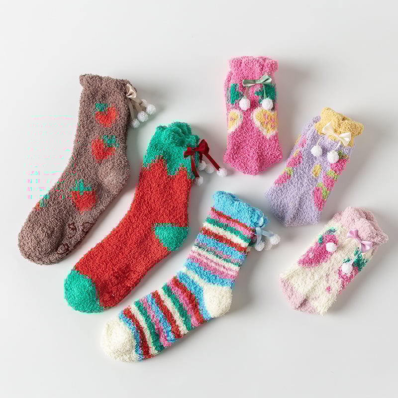 Get cozy and festive this Christmas with our Soft Christmas Fleece Socks with Strawberry, Flower, Stripe Pattern! These adorable socks are made with soft and fluffy fleece, and feature a variety of festive patterns, including strawberries, flowers, and stripes. They're perfect for keeping your feet warm and toasty on cold winter days, and they're sure to add a touch of fun and whimsy to your holiday wardrobe.