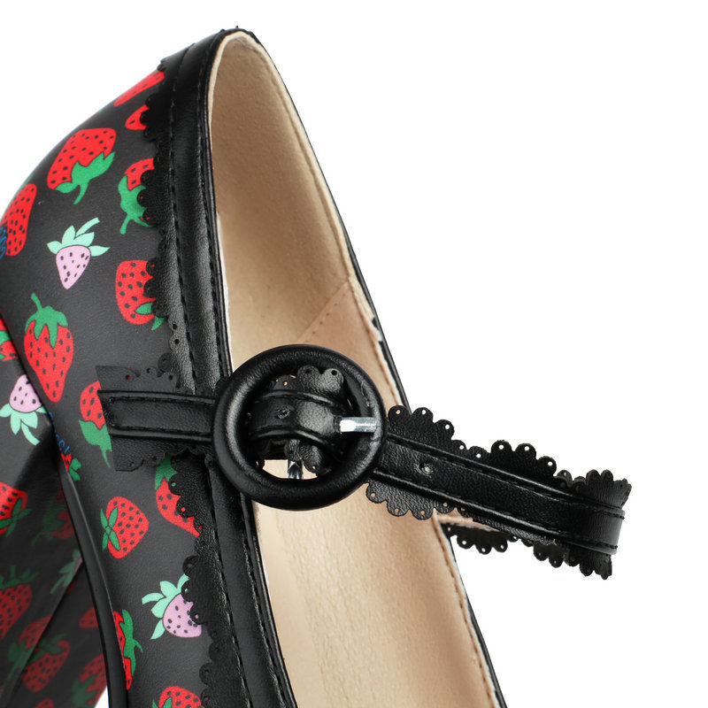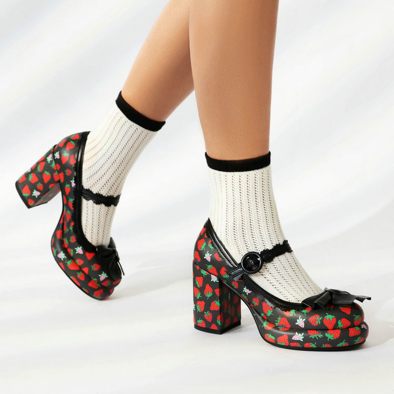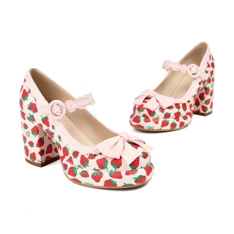 Channel your inner sweetheart with these adorable Strawberry Print Mary Janes! Featuring a playful strawberry design and a darling bowknot front, these high heels add a touch of whimsy to any outfit. Choose from 3 delicious colors!
