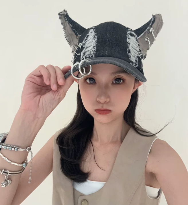 Channel your inner rebel with this edgy Y2K cap. Distressed denim, playful ears, and punk vibes collide for a head-turning statement piece. Perfect for festivals, concerts, or everyday edgy style.