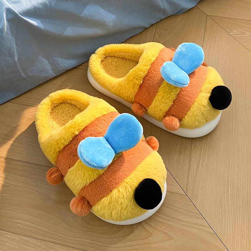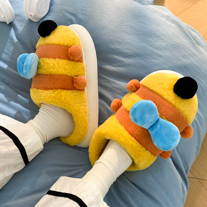 Buzz into comfort with our adorable Kawaii Funny Bee Plush Slippers! These soft and snuggly slippers are the perfect way to add a touch of playful charm to your daily routine. The fuzzy bee design is sure to brighten your day, while the plush material will keep your feet warm and cozy. With free shipping, there's no reason not to treat yourself to these adorable and practical slippers.
