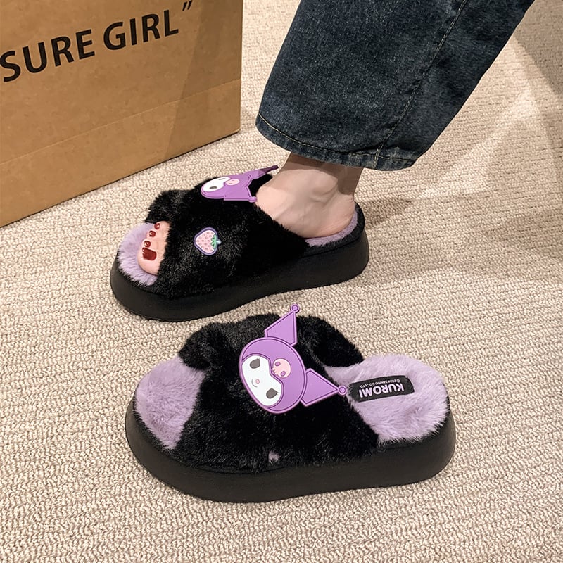 With a durable sole and easy slip-on style, these sandals are both practical and fashionable. Embrace the cuteness and comfort of our Kuromi Fleece Sandals.