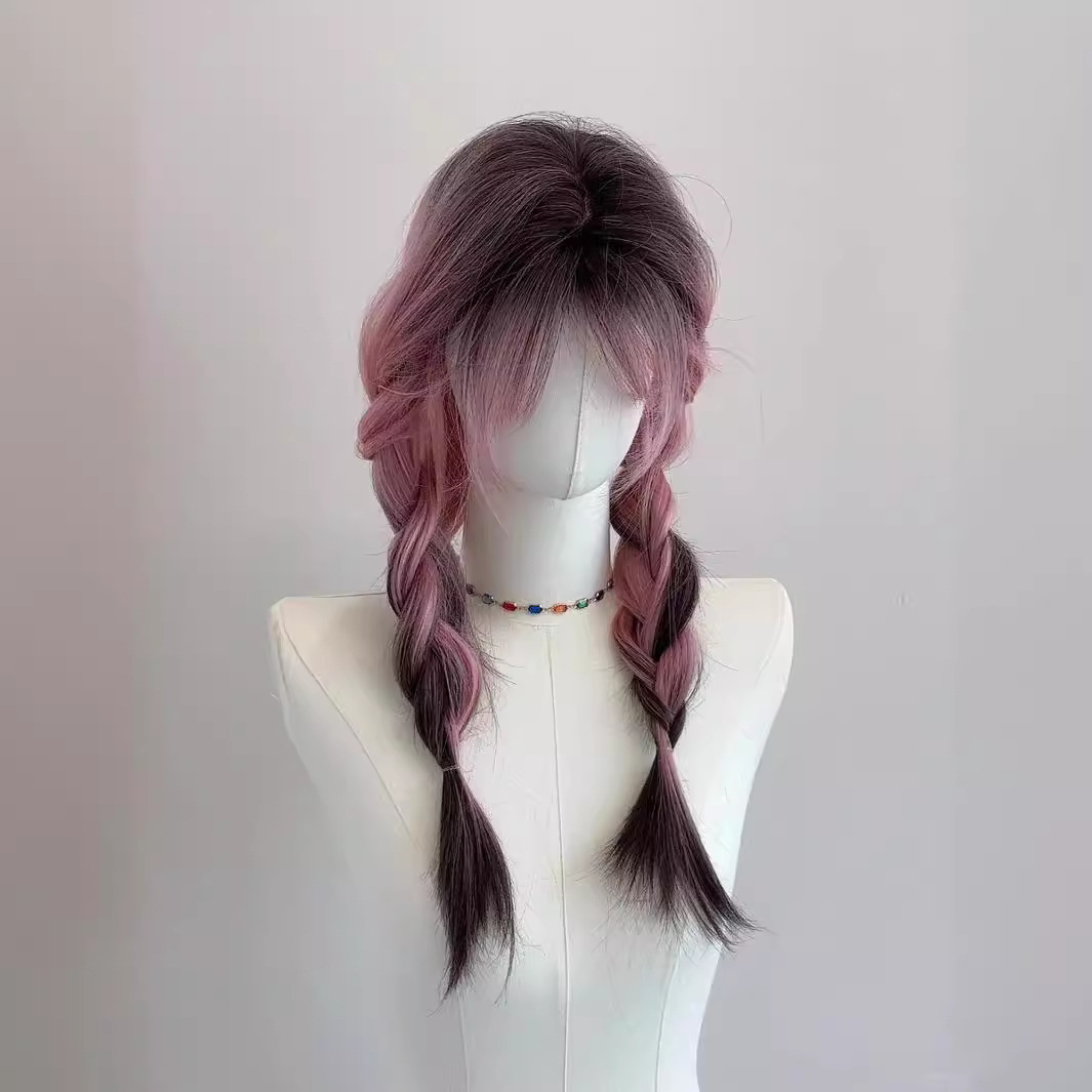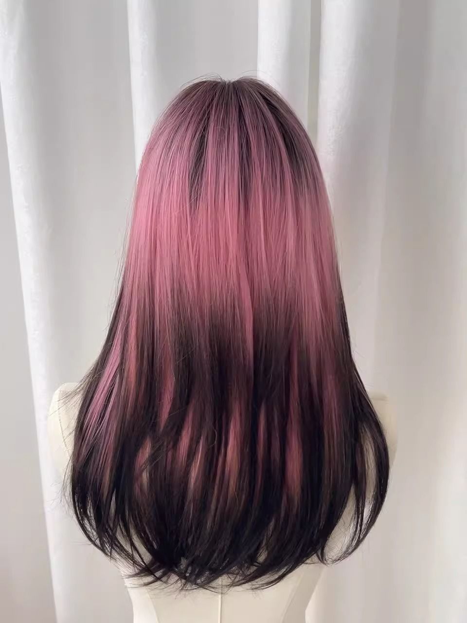 Whether you're looking to add a touch of drama to your everyday style or create a bold new persona for a special occasion, this Pink Black Mixed Gradient Mid-length Wig is the perfect choice.