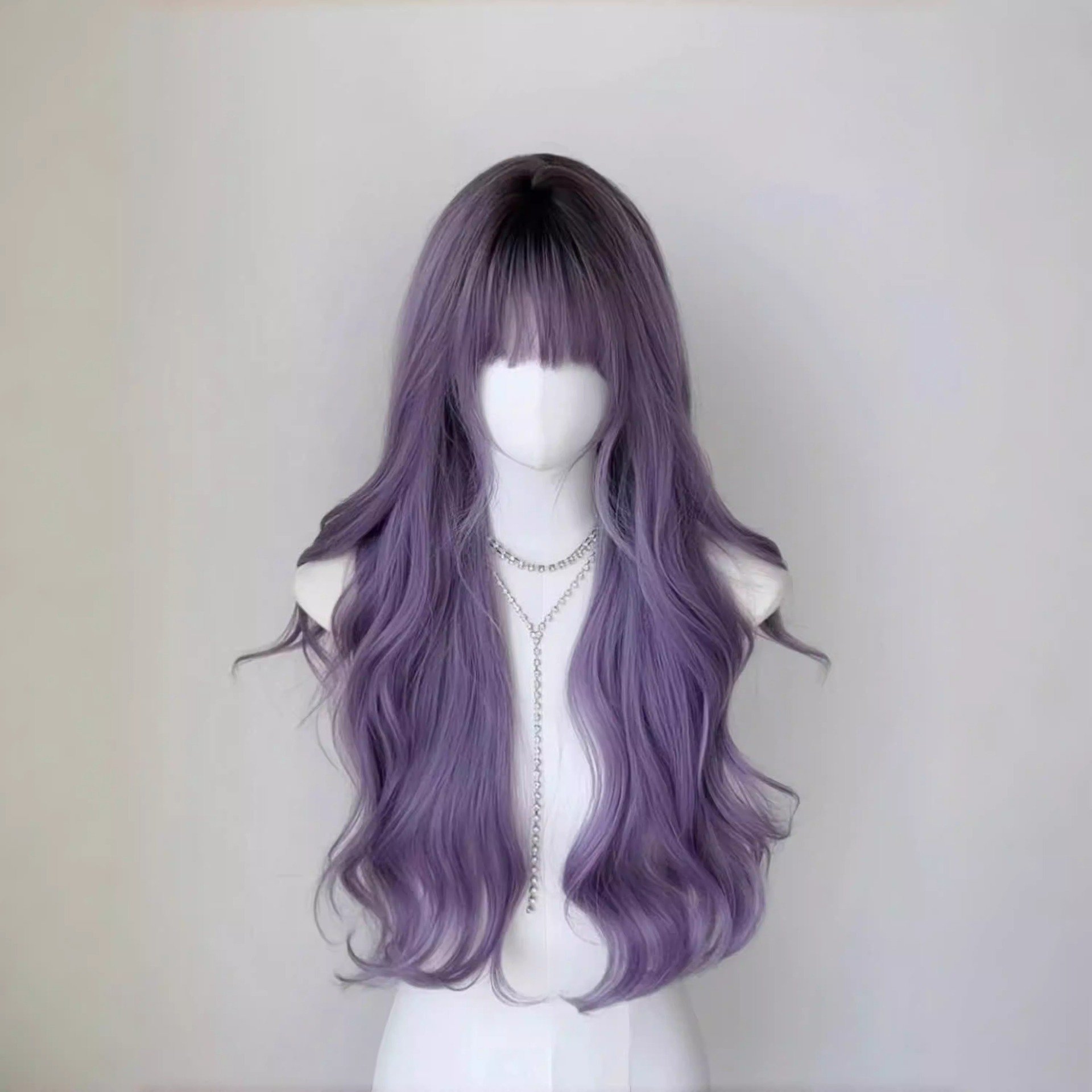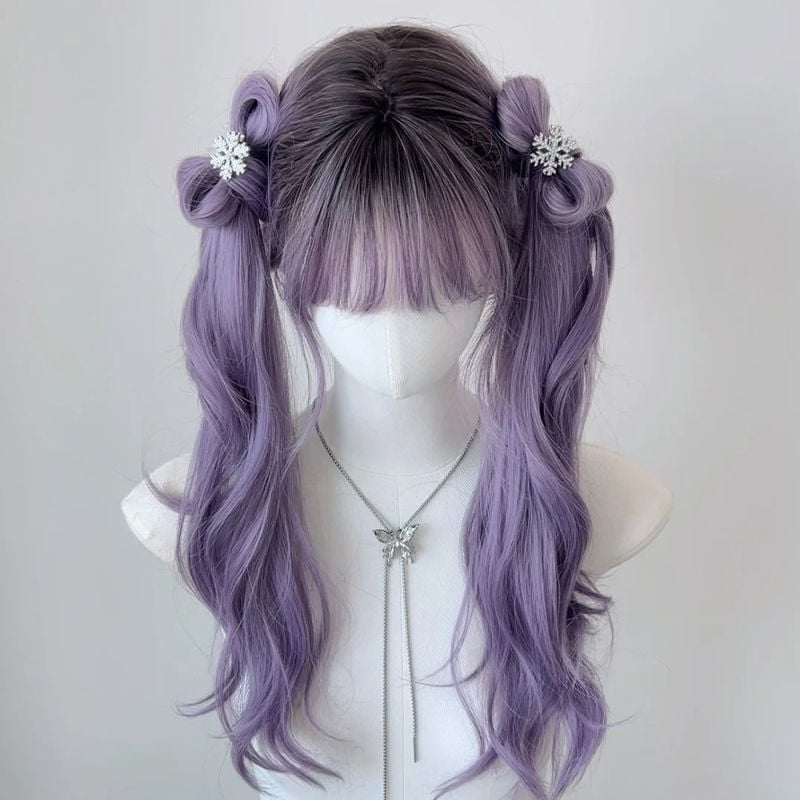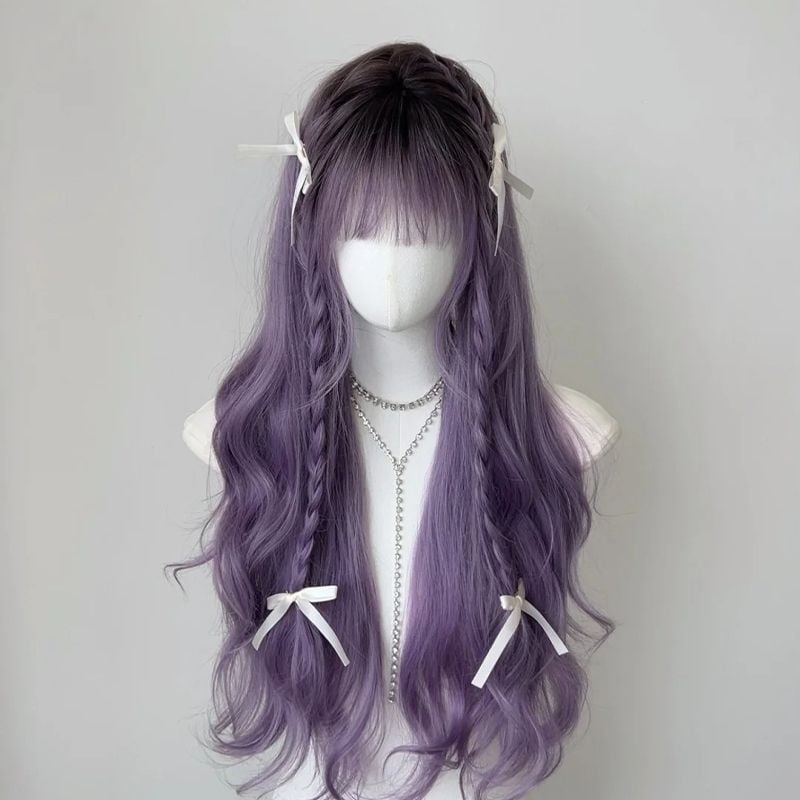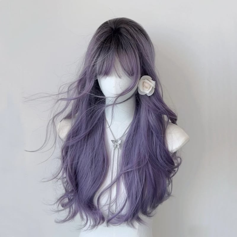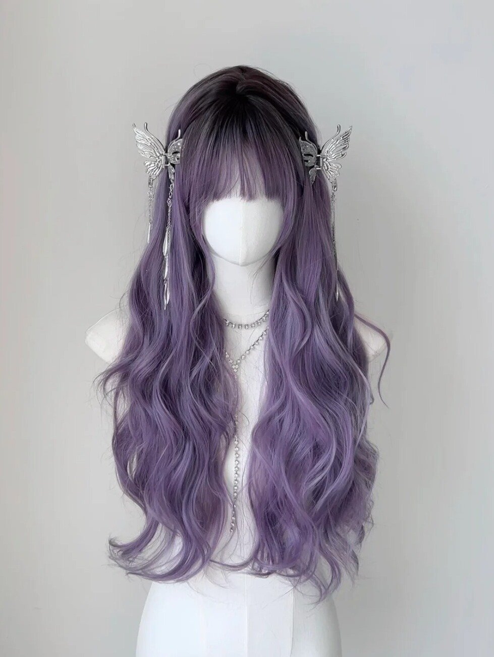 Experience a vibrant and playful new look with this stunning Purple Grey Mixed Gradient Curly Wig. This eye-catching wig features a captivating blend of purple and grey tones that transition seamlessly, creating a unique and mesmerizing effect.