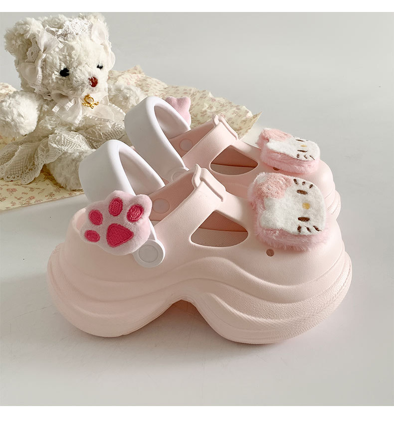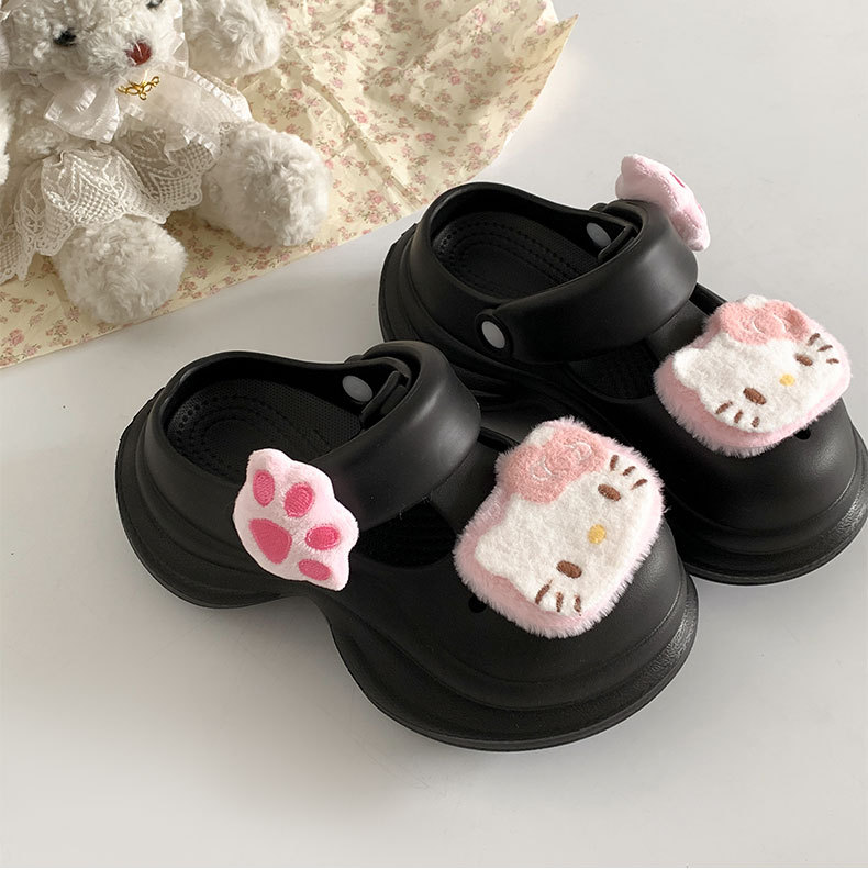 Step into adorable comfort with our Cute Kitty Platform Sandals! These fun, Crocs-style sandals feature a lightweight platform sole for a little lift and all-day wearability. Decorated with charming kitty cat pins, they're the purr-fect way to show off your love for felines. Easy to slip on and off, these sandals are ideal for casual outings and adding a playful touch to any look. Get ready for compliments with these uniquely cute and comfy platform sandals!