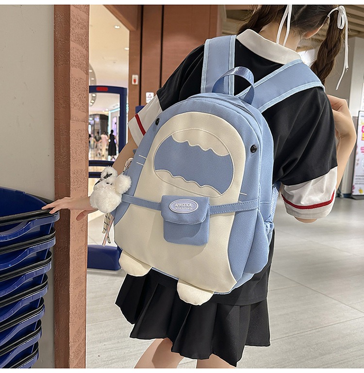 This isn't just a bag; it's a statement. Made from durable nylon, it's built to withstand the school-day frenzy. The spacious main compartment holds books and snacks, while the smaller front pocket keeps essentials handy. With its playful shark design and comfortable straps, it's the perfect companion for students who are ready to make a splash.