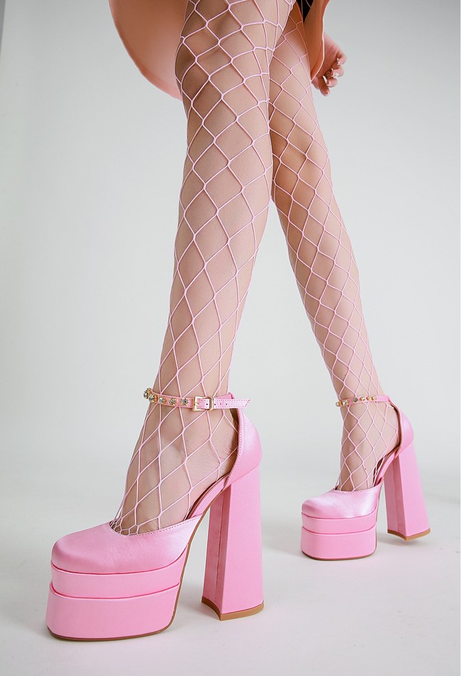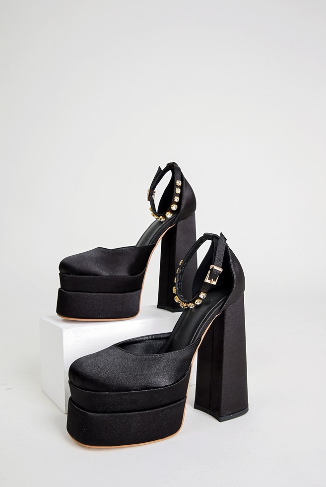 Fashion Satin Clunky Heeled High Heels - 3colors