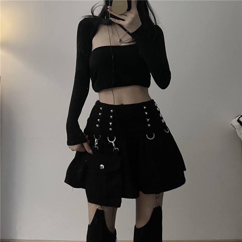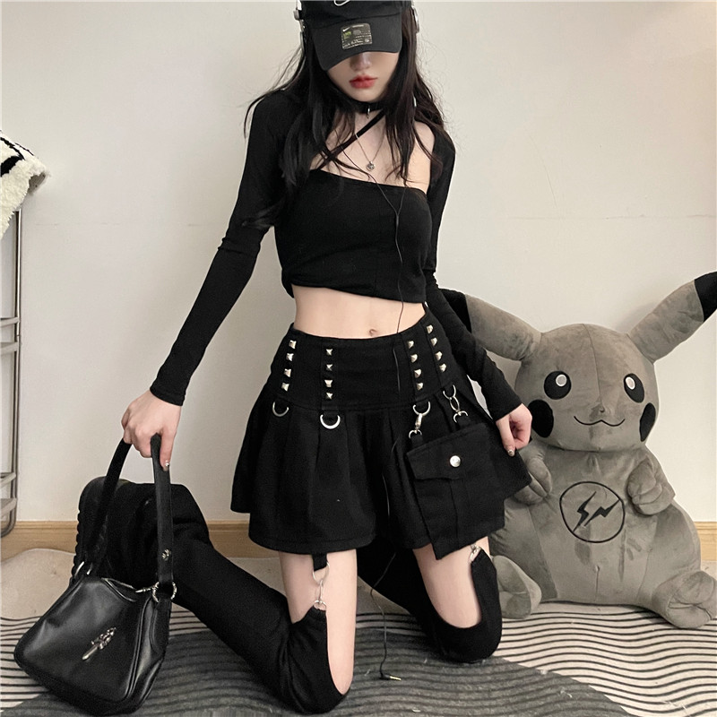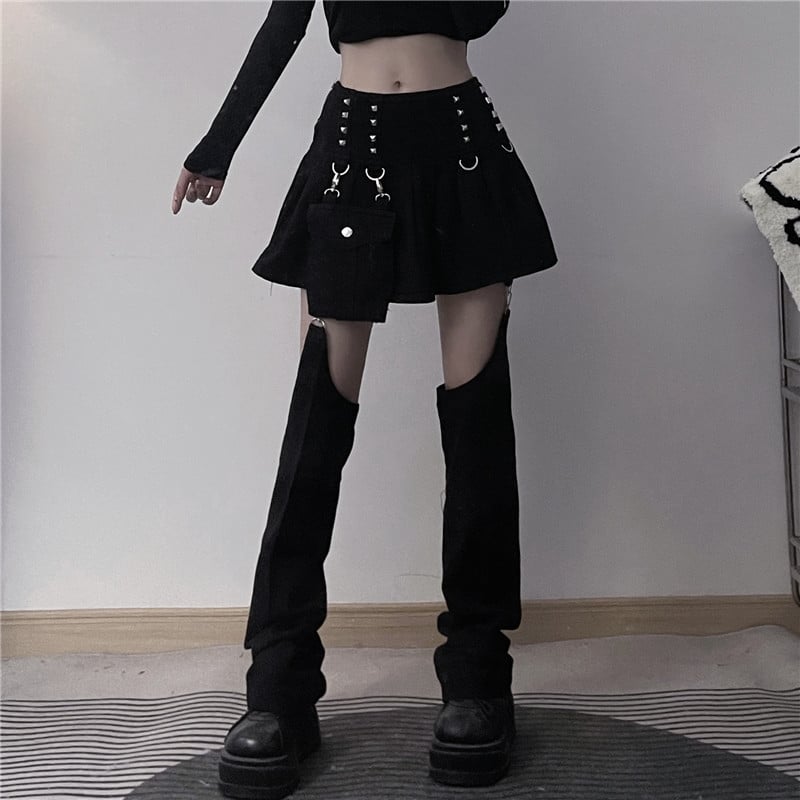Rivet pleated hakama short skirt detachable two-wear jeans