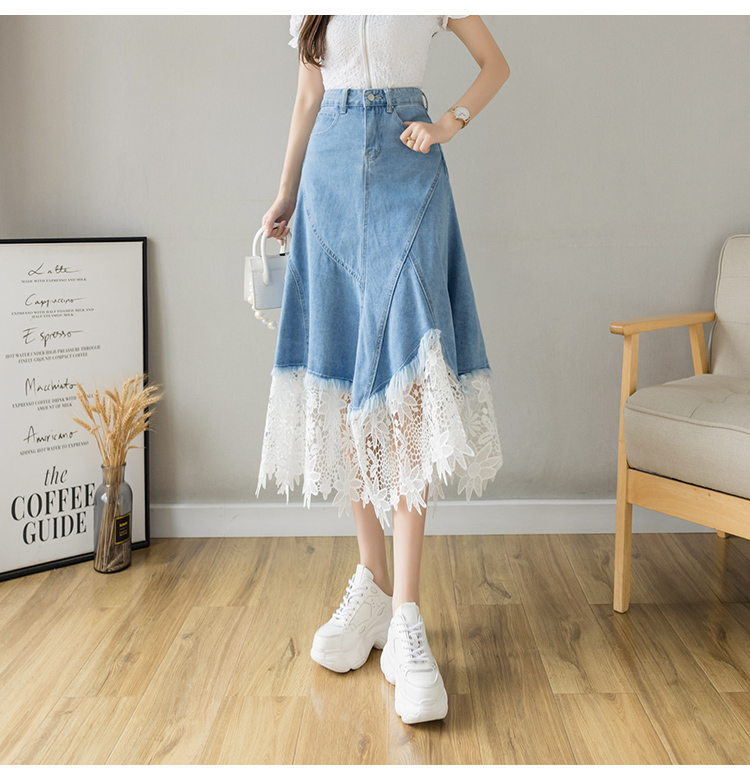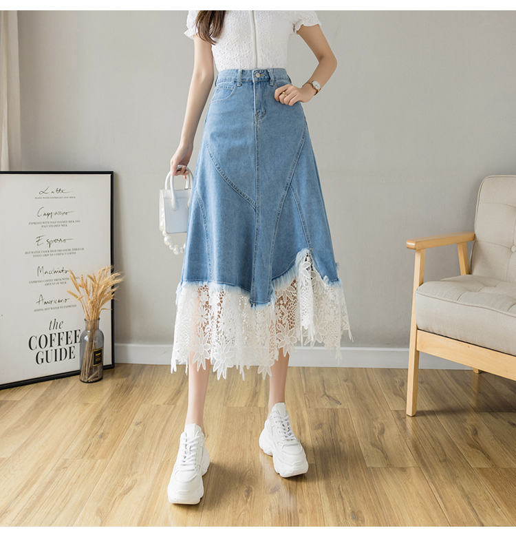 Casual Irregular Lace Patchwork Denim Skirt