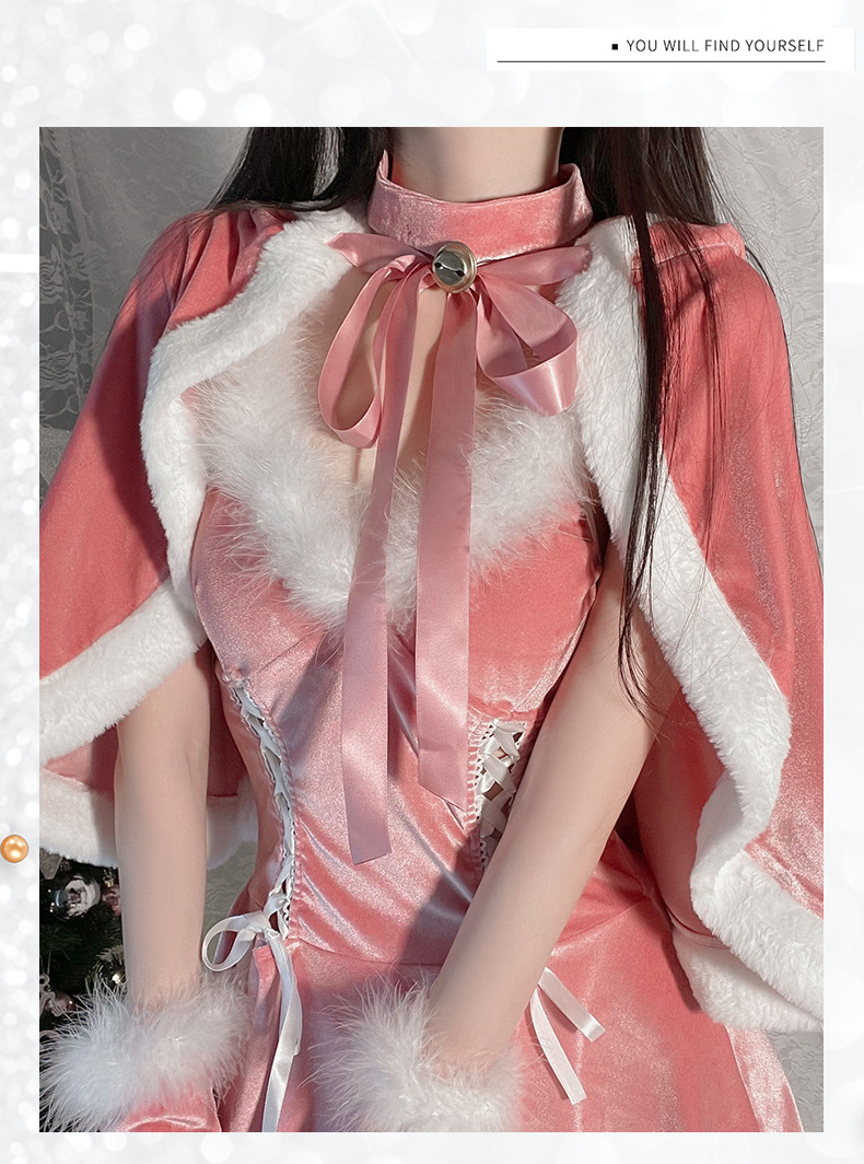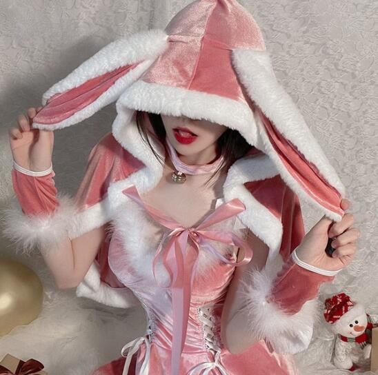 A Christmas miracle, complete with a sweet matching Christmas antler headband and velvety soft fabric with a high slit skirt and corset front.