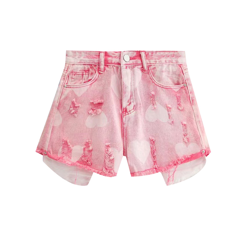 Make a statement with our Pink High Waist Love Pattern Curling Washed Ripped Denim Shorts! These trendy shorts blend edgy distressing with playful love patterns, creating a unique and stylish look. With a high waist design, they offer both comfort and flattering fit. Embrace the summer vibes and express your individuality with our Pink High Waist Love Pattern Curling Washed Ripped Denim Shorts – where fashion meets fun in every fold!