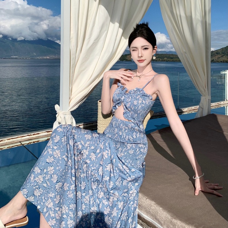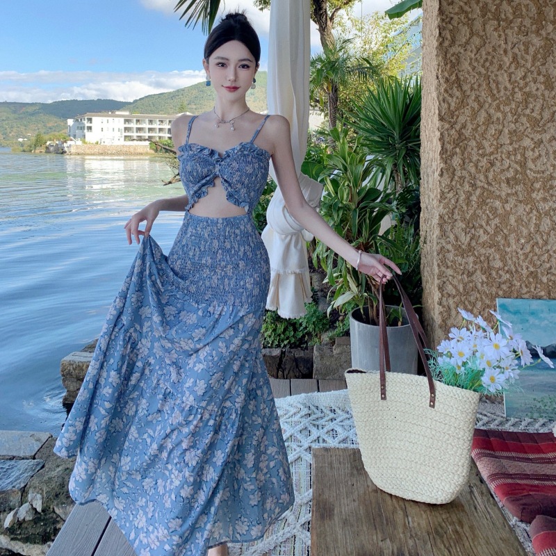 Embrace timeless elegance with our Blue Floral Maxi Dress, infused with French-inspired sophistication. This stunning ensemble features delicate floral patterns that evoke the romance of a Parisian garden. With a front cut-out design, it adds a touch of allure to your silhouette, while the maxi length exudes effortless grace. Channel the essence of French style and let your beauty bloom in our Blue Floral Maxi Dress – where charm meets chic in every step.