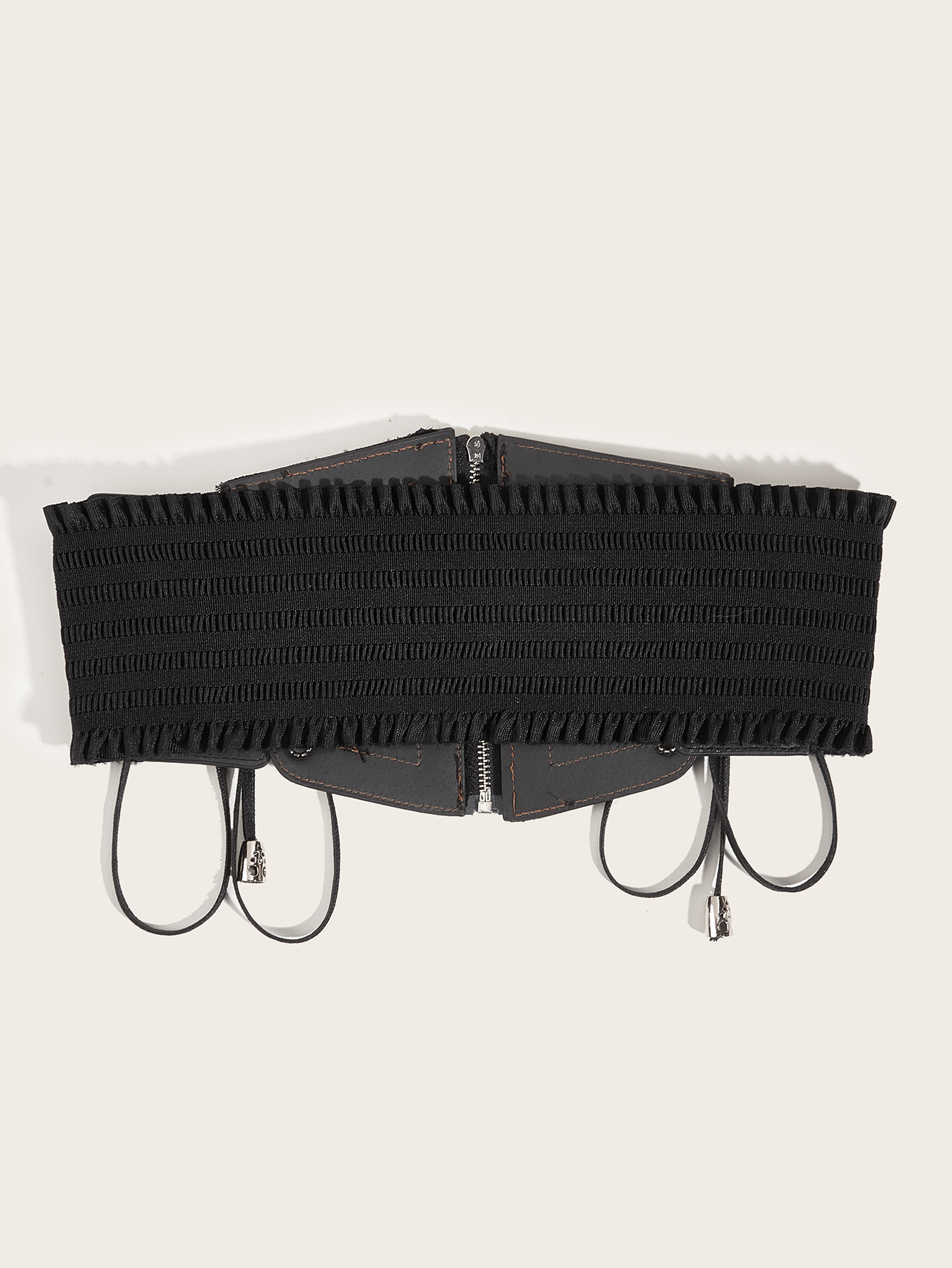 Cinched with love! This elastic black corset belt features a bold heart design and a zippered front for easy on-and-off. Lace-up side creates a snatched silhouette that flatters any figure. Pair it with dresses, tees, or anything in between for an edgy, romantic touch.