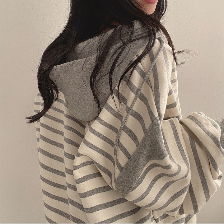 Embrace effortless style with our Korean Fashion Stripes Hoodie Pullover Sweater.