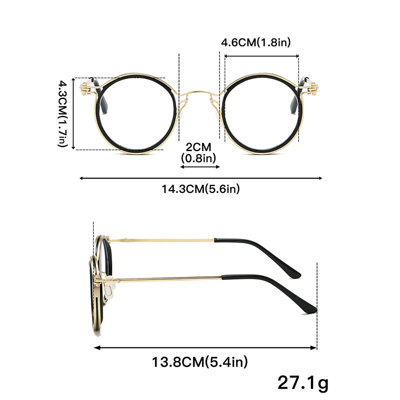 Step into timeless style and digital comfort with our Retro Round Frame Anti-blue Light Glasses. These glasses blend classic aesthetics with modern technology, offering a sophisticated look and essential eye protection.