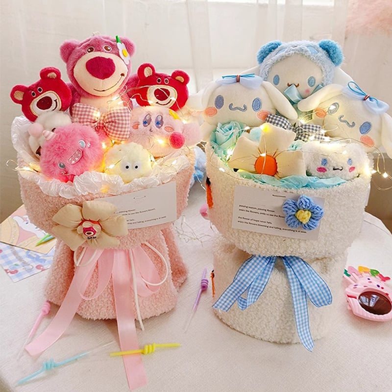 This gift is perfect for fans of this iconic character or anyone who appreciates the whimsical and endearing nature of Kuromi. Whether it's a special occasion or just a "thinking of you" gesture, this plush bouquet adds a touch of Kawaii charm to any moment. It's a lasting and huggable reminder of your affection that will bring a smile to anyone's face.