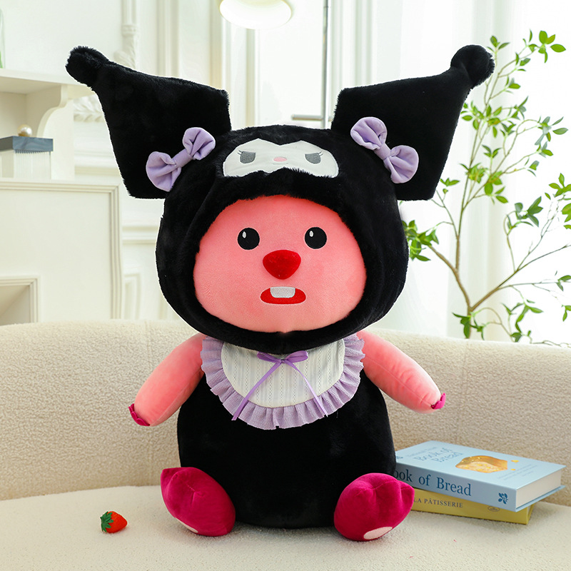 Double the Cuteness! This cuddly Loopy plush is sporting an adorable Kuromi hoodie! Super soft and perfect for fans of Sanrio and all things kawaii. Free Shipping!