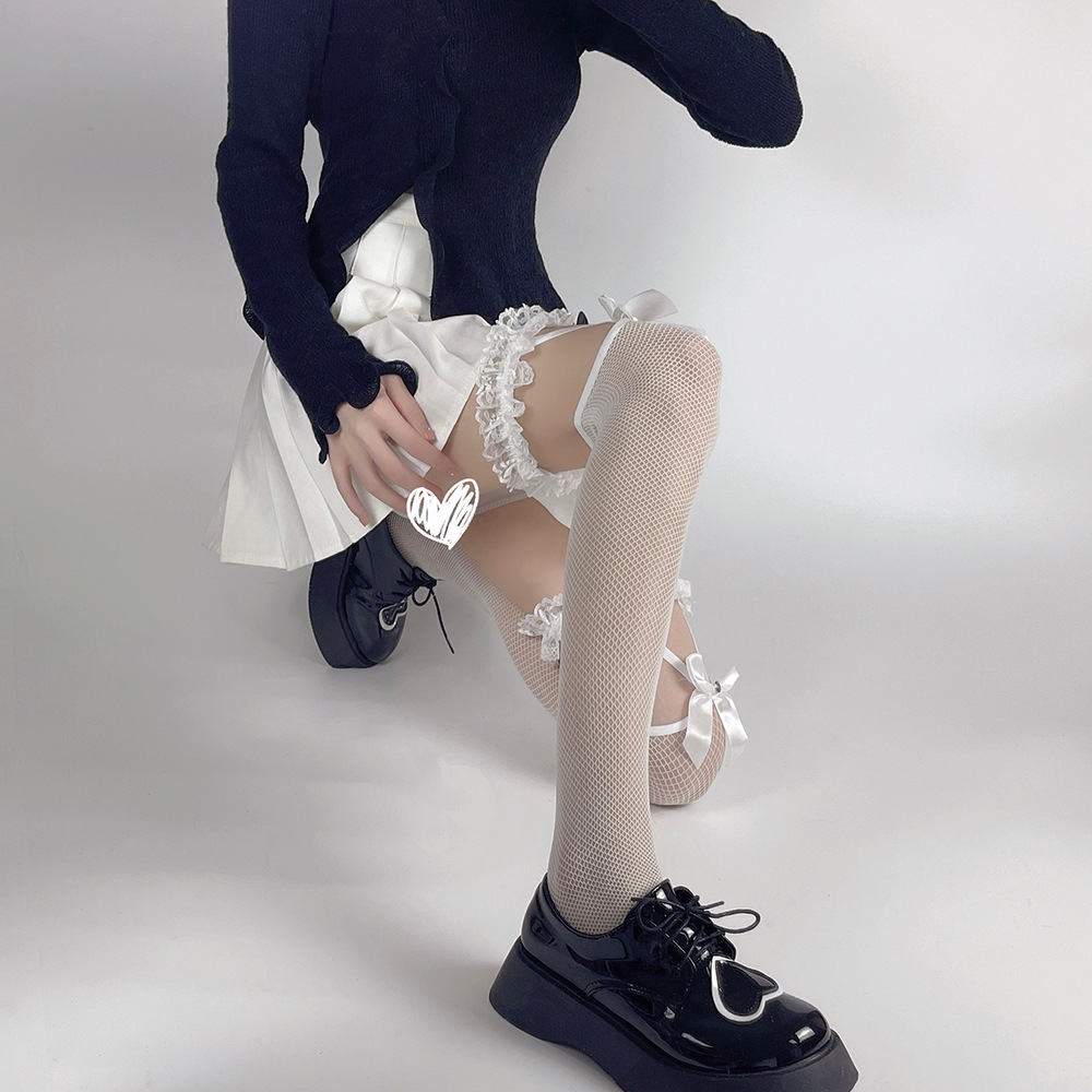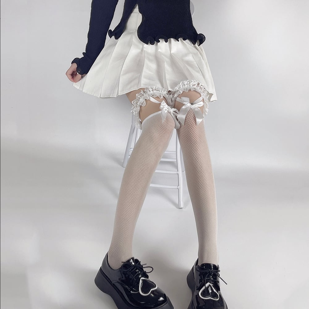 Lace Bowknot Fishnet Knee High Socks Stockings