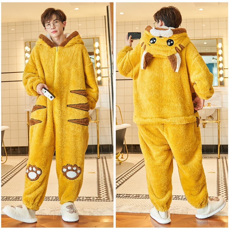 Soft Fleece Tiger Hoodie Onesie Couple Pajama