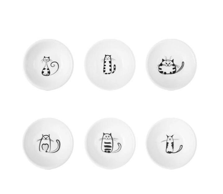 These simplistic black and white yet sublime looking Tiny Cute Cat Plates come in a set of 6 pieces. You see all motives on the pictures. They will spice up your kitchen, your dinner and whatever table you put them on. The material they are made of is high-quality porcelain.