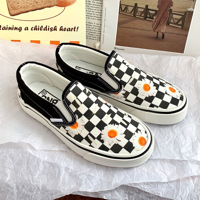 Retro Daisy Checkerboard Canvas Slip-on Shoes