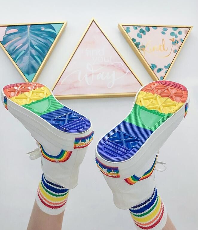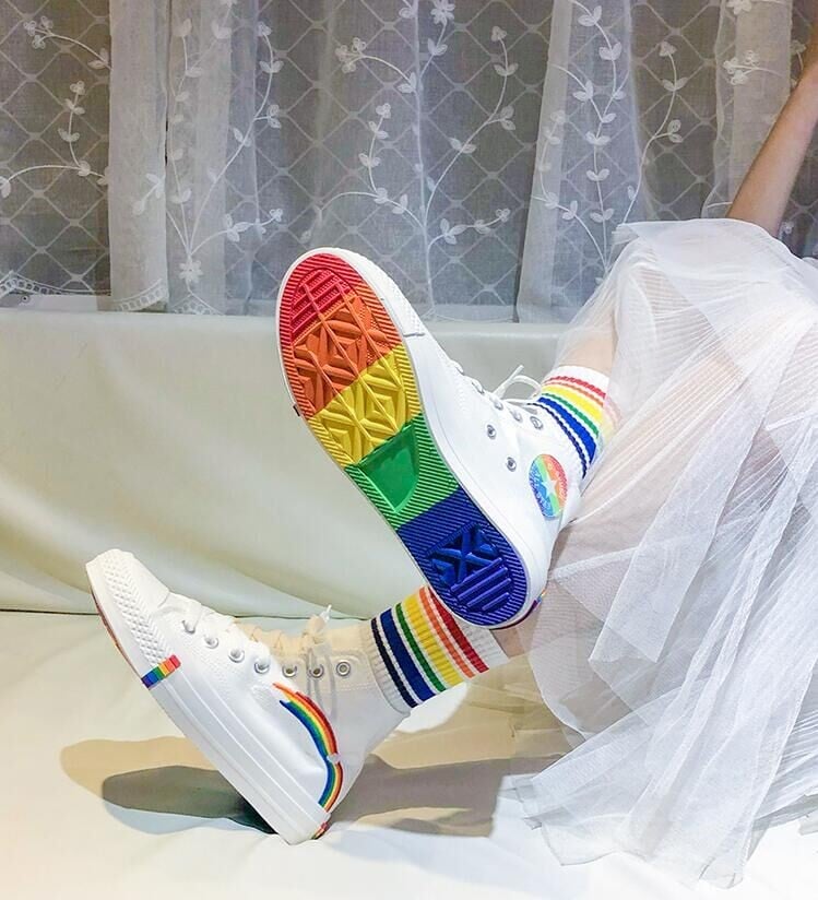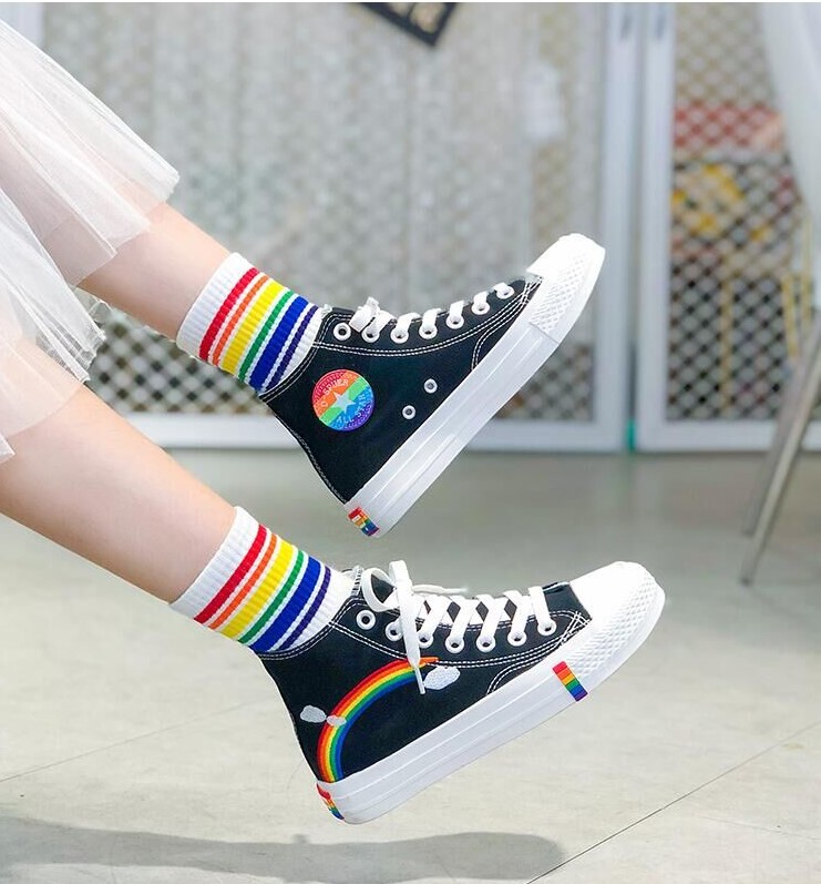 Upgrade your fashion game with these rainbow embroidered high top canvas shoes: