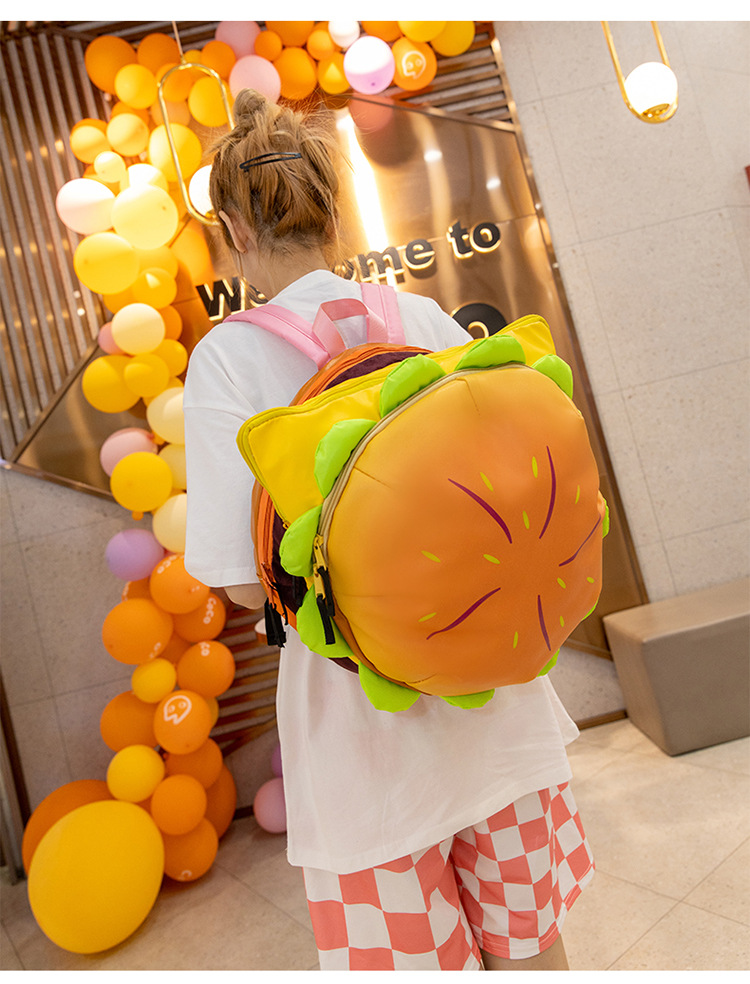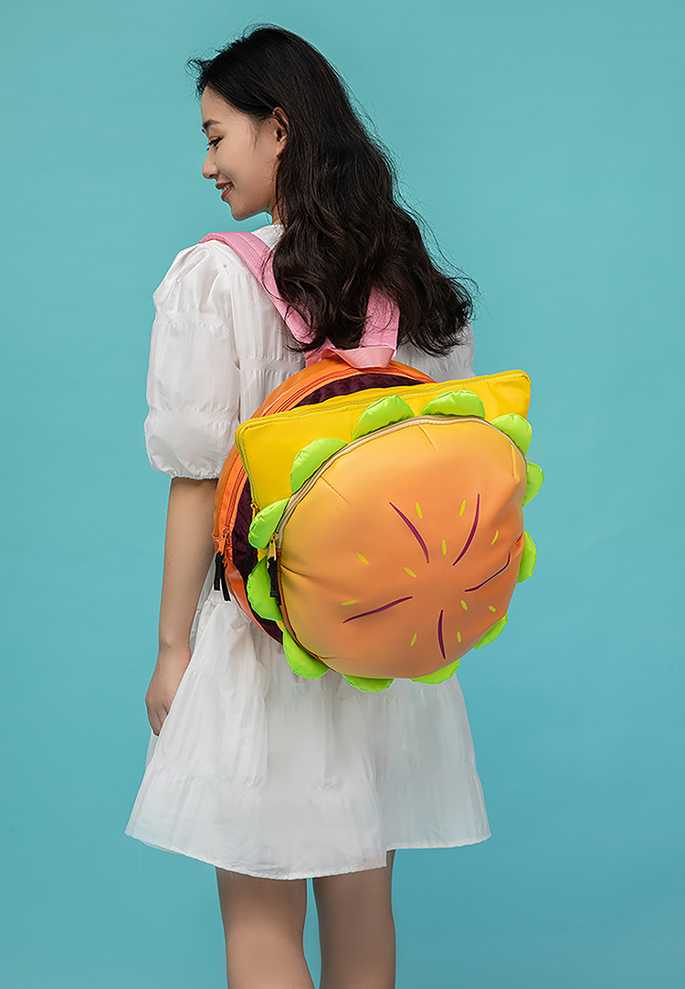 The creative design of a cheeseburger makes this backpack a standout accessory. It's perfect for those who love Harajuku fashion or simply want to express their playful side.