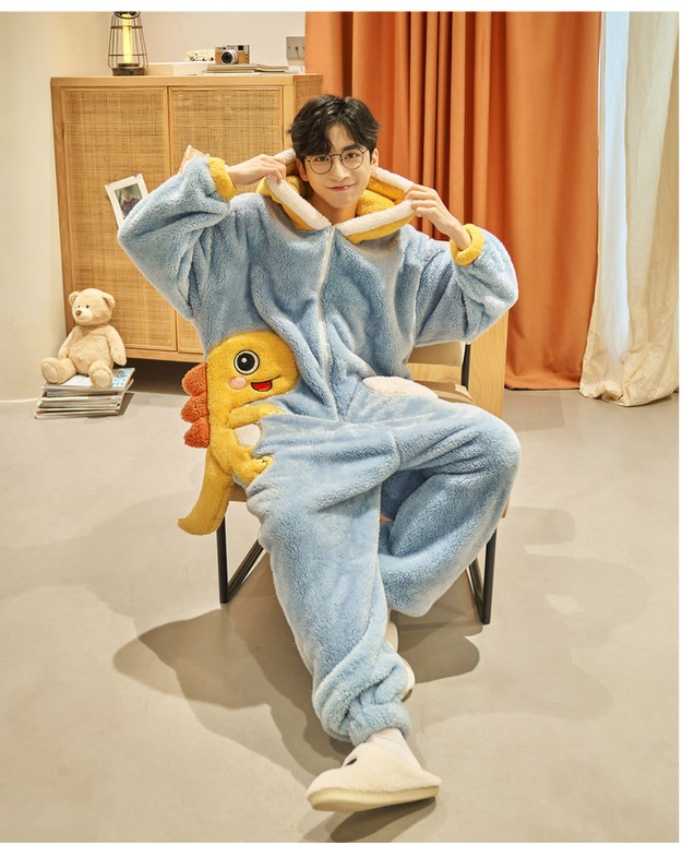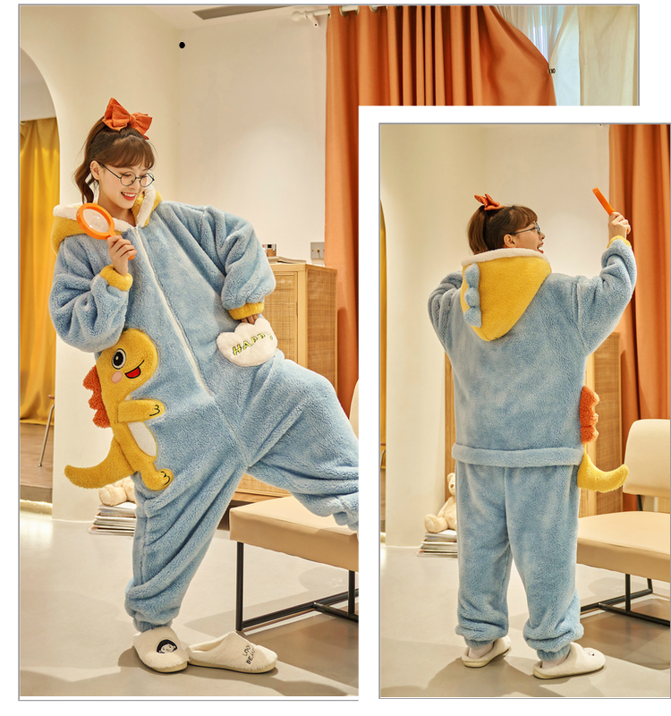 Kawaii Dino Fleece Onesie Couple Pajama