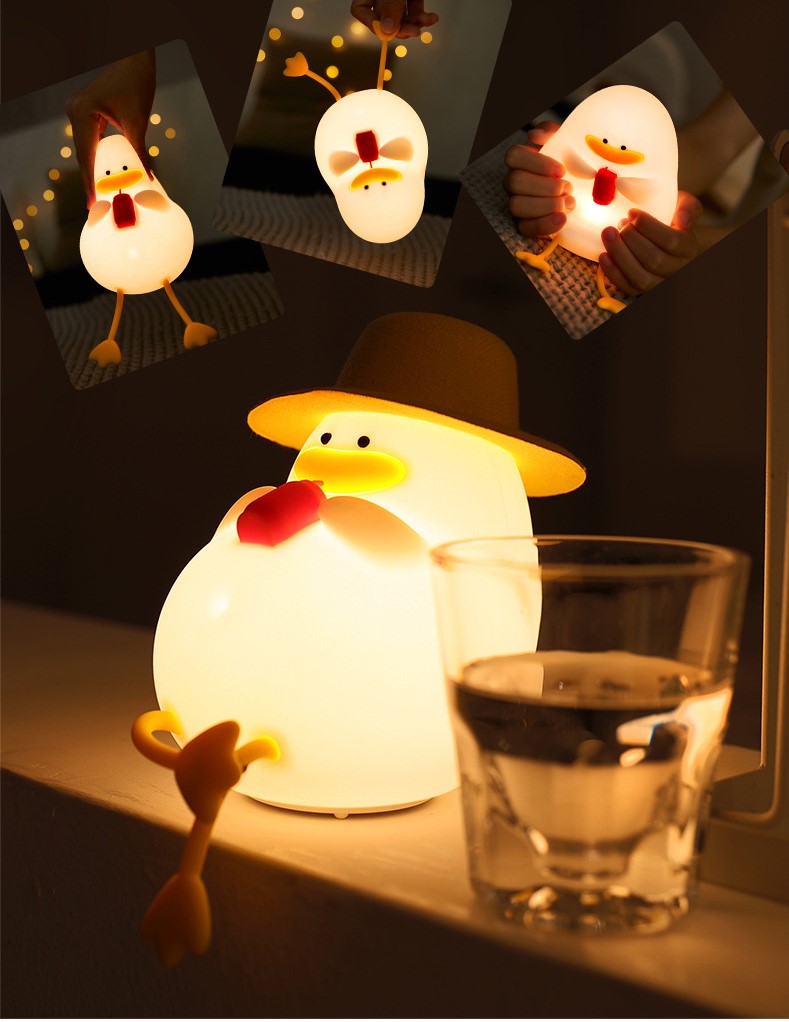 【Fun duck night light】: With cute duck shape and warm light, it is easier for children to fall asleep while playing. You can click the top to adjust the brightness of the night light in the weak, medium and strong gears, and finally turn it off.