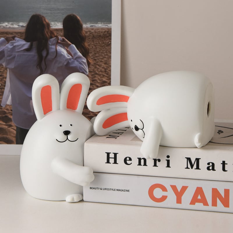 Made of resin and available in a bright white color, these bookends are sure to add a touch of cuteness to any bookshelf. The Hug Rabbit Bookends are perfect for holding up your favorite books or other belongings and are sure to make you smile every time you see them.