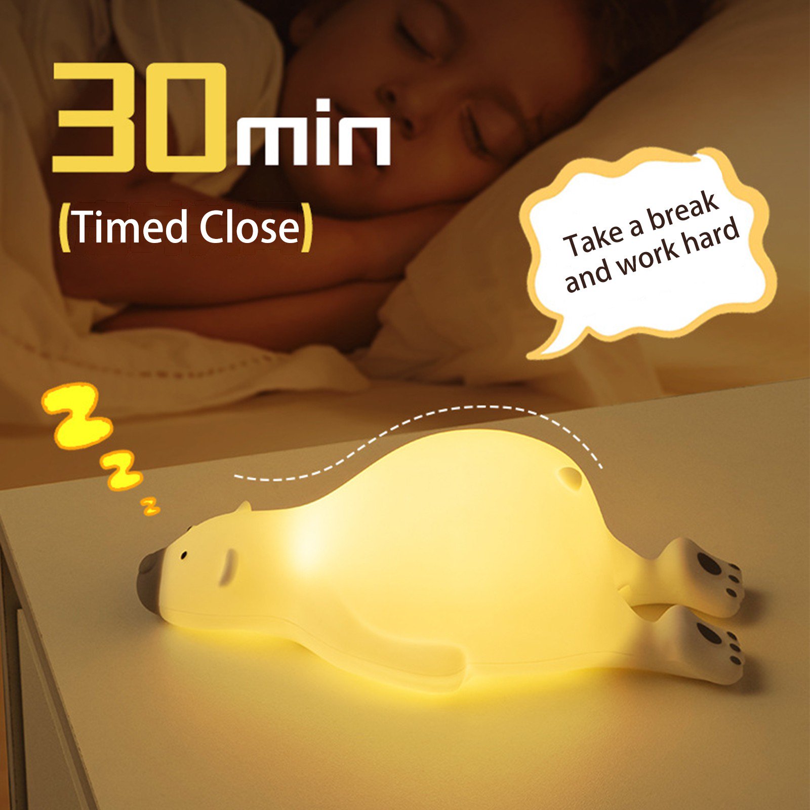 Soft Bear Light - Who is lying down on the bed, and fell asleep before your kids? It's your children's good friend! With safe material, teens love soft feelings, like mama's skin. Thin but thick enough for baby to squeeze it easily! Baby would be attracted by its cute anime shape, kawaii sleeping face, who can not help to poke it. Have a nice sleep with huggable infant night light.
