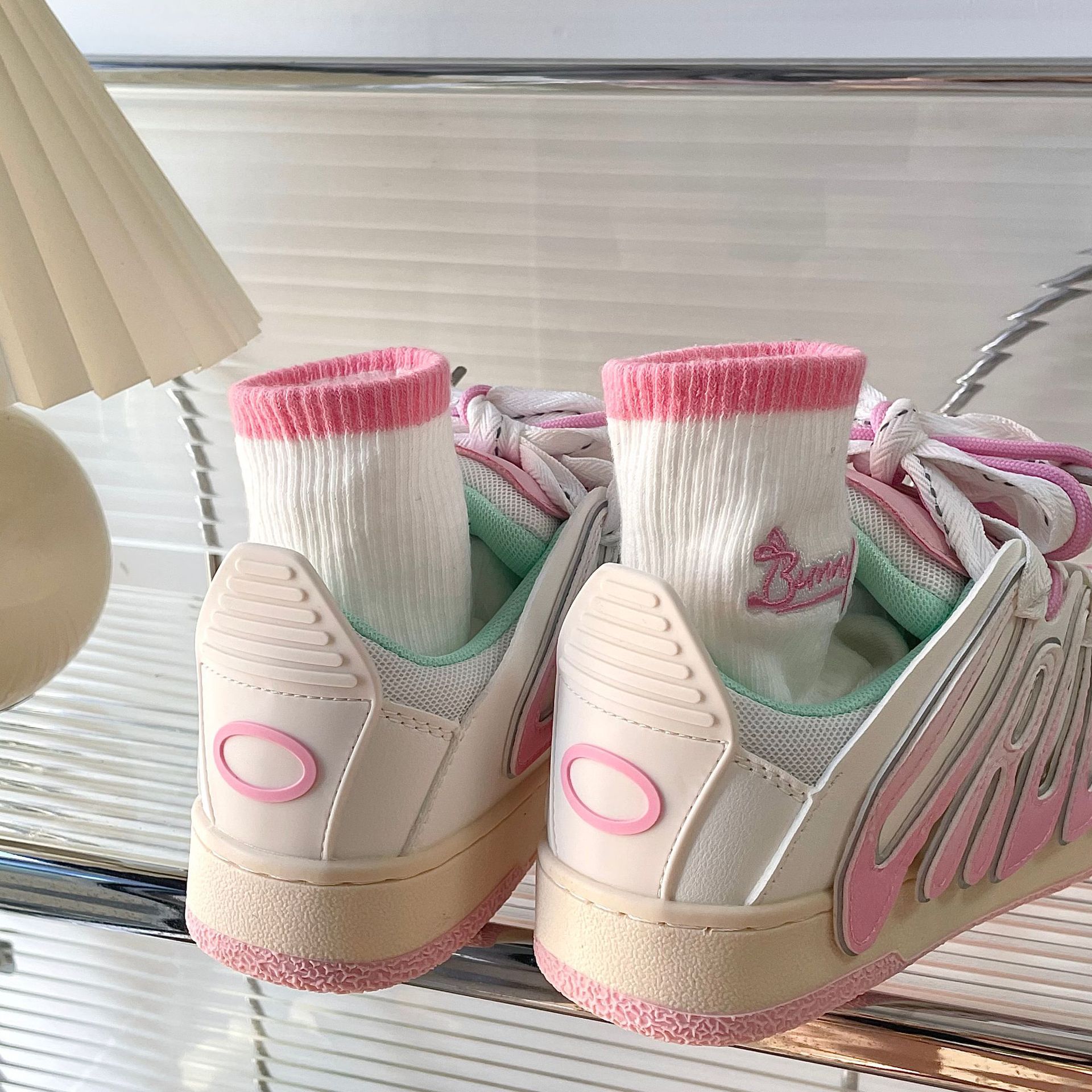 Step into the world of chic style with our Pink White Gradient Letter Sneakers! These trendy kicks showcase a captivating pink-to-white gradient, adding a touch of ombre allure to your every step. The subtle letter detailing brings a personalized touch to your footwear collection. Walk the walk in fashion-forward comfort with our Pink White Gradient Letter Sneakers – because expressing your style has never been this gradient and glamorous!