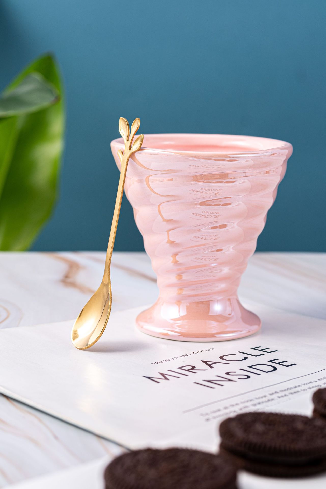 13pcs Pink Glaze Ceramic Thread Ice Cream Dessert Salad Cup Set