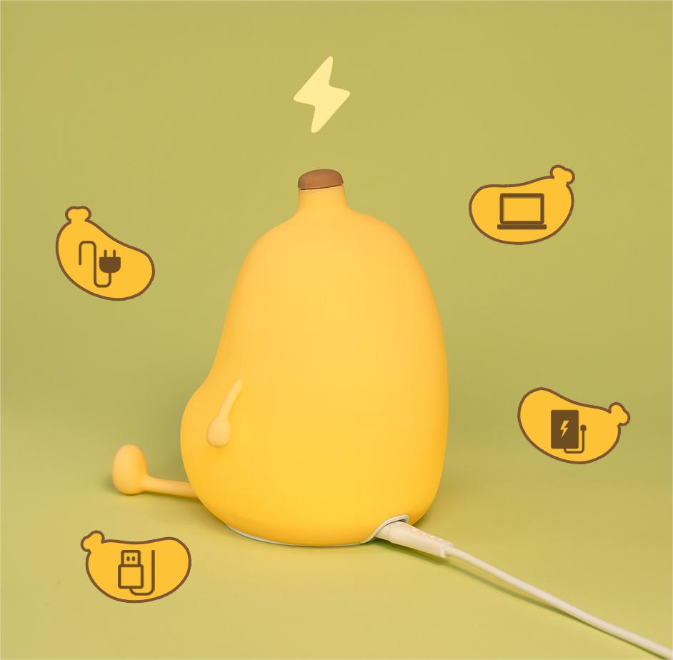 Illuminate your space with whimsical charm using our Funny Banana LED Night Light. Tap to effortlessly switch on/off, and enjoy its squishy silicone texture. With a rechargeable battery, it offers convenience and eco-friendliness. Emitting a warm light, it creates a cozy atmosphere perfect for bedrooms or nurseries.
